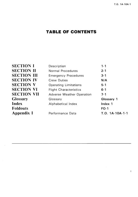 Appendix I Performance Data – T.O. 1A-10A-1-1