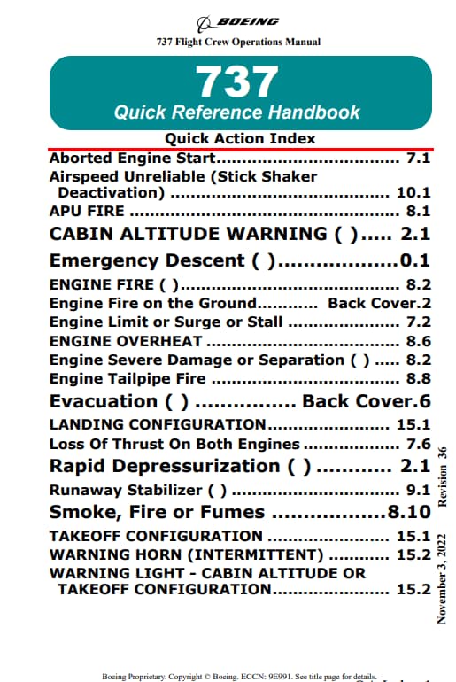 Name: Boeing 737 NG QRH Checklist (Quick Reference Handbook)