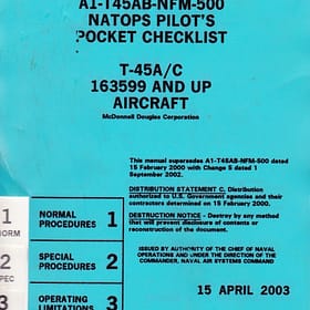 T-45 A/B/C  and up – Pilot’s Pocket Checklist, containing normal and special procedures, emergency procedures, operating limitations and performance data.