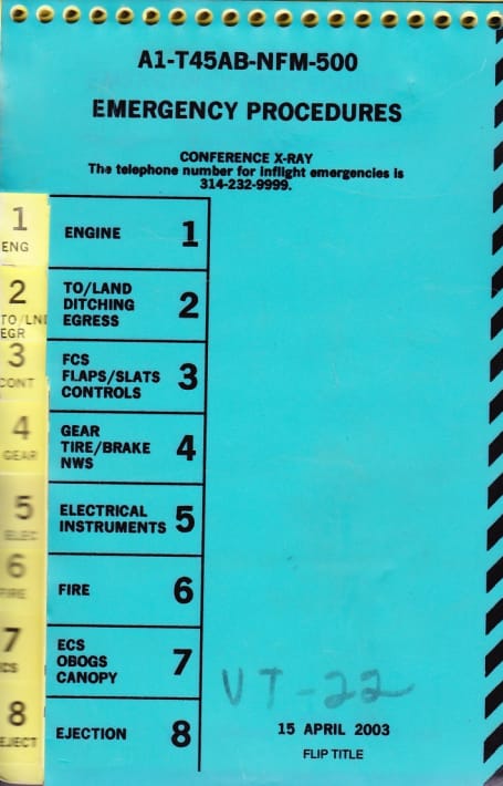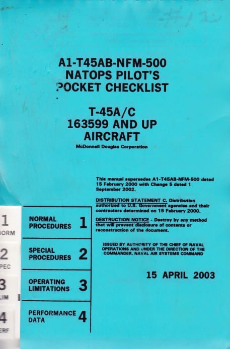 T-45 A/B/C  and up – Pilot’s Pocket Checklist, containing normal and special procedures, emergency procedures, operating limitations and performance data.